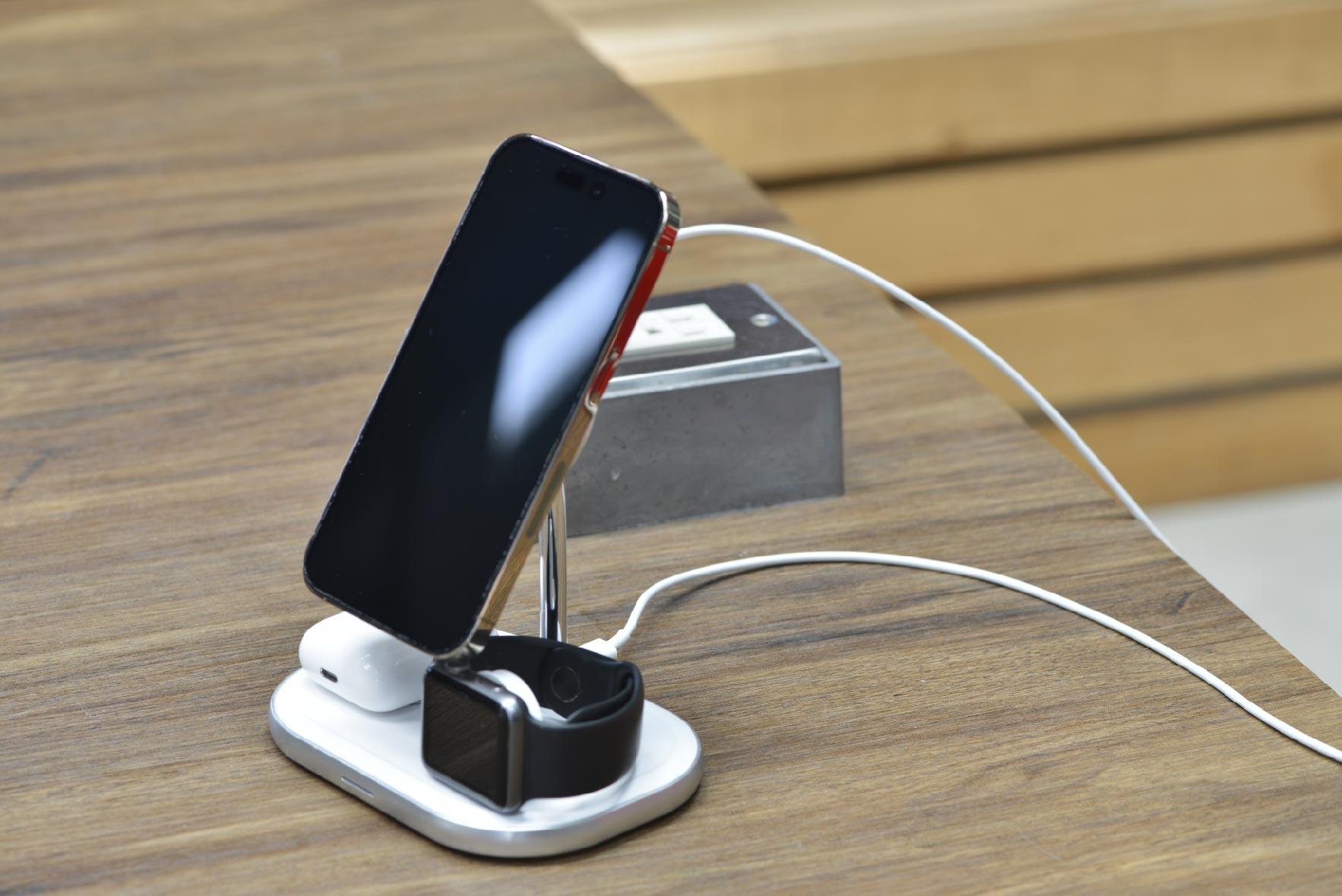 3-in-1 Design: The WCP303 allows simultaneous charging of your iPhone, Apple Watch, and AirPods, making it a convenient all-in-one solution.