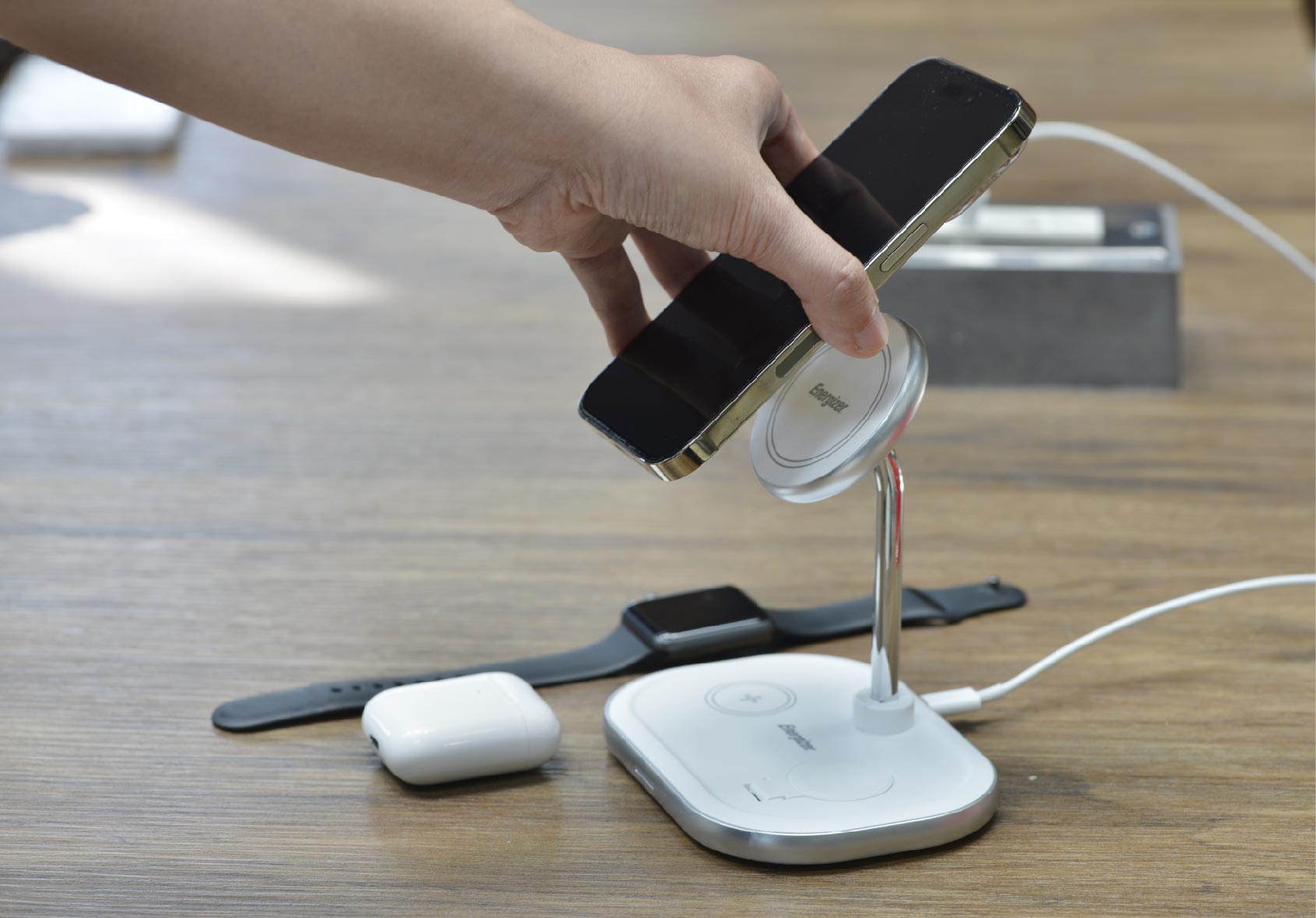 MagSafe Compatibility: Designed for smartphones, watches, and EarPods with MagSafe, it ensures precise alignment and efficient charging.