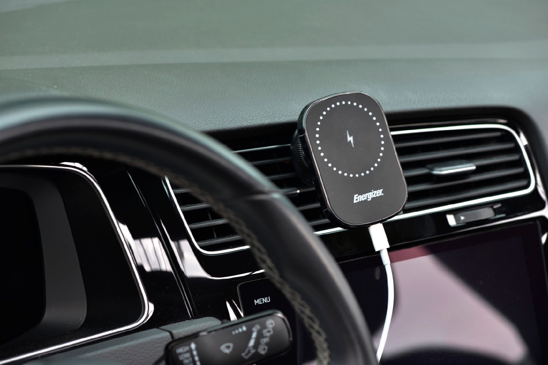 The Energizer ECA007 MagSafe car charger offers 15W wireless fast charging as well as a flexible mounting solution for your vehicle. Designed for MagSafe compatible iPhones and cases, it delivers up to 15W of power to charge your smartphone quickly. This can be mounted securely to the air vent, windscreen and dashboard via the in box included attachments and offers endless adjustments for screen visibility and easy access. Includes USB A to USB Type C cable.