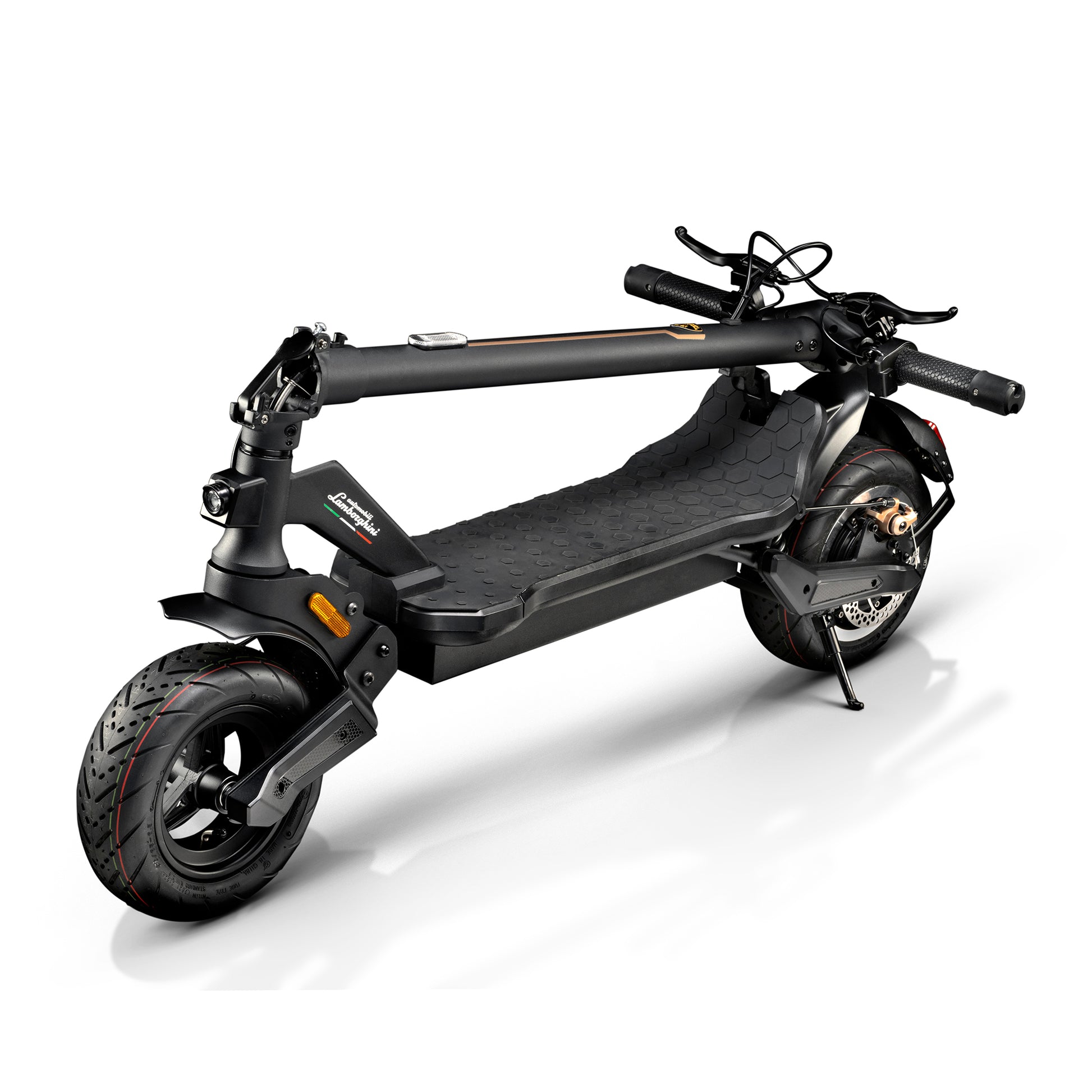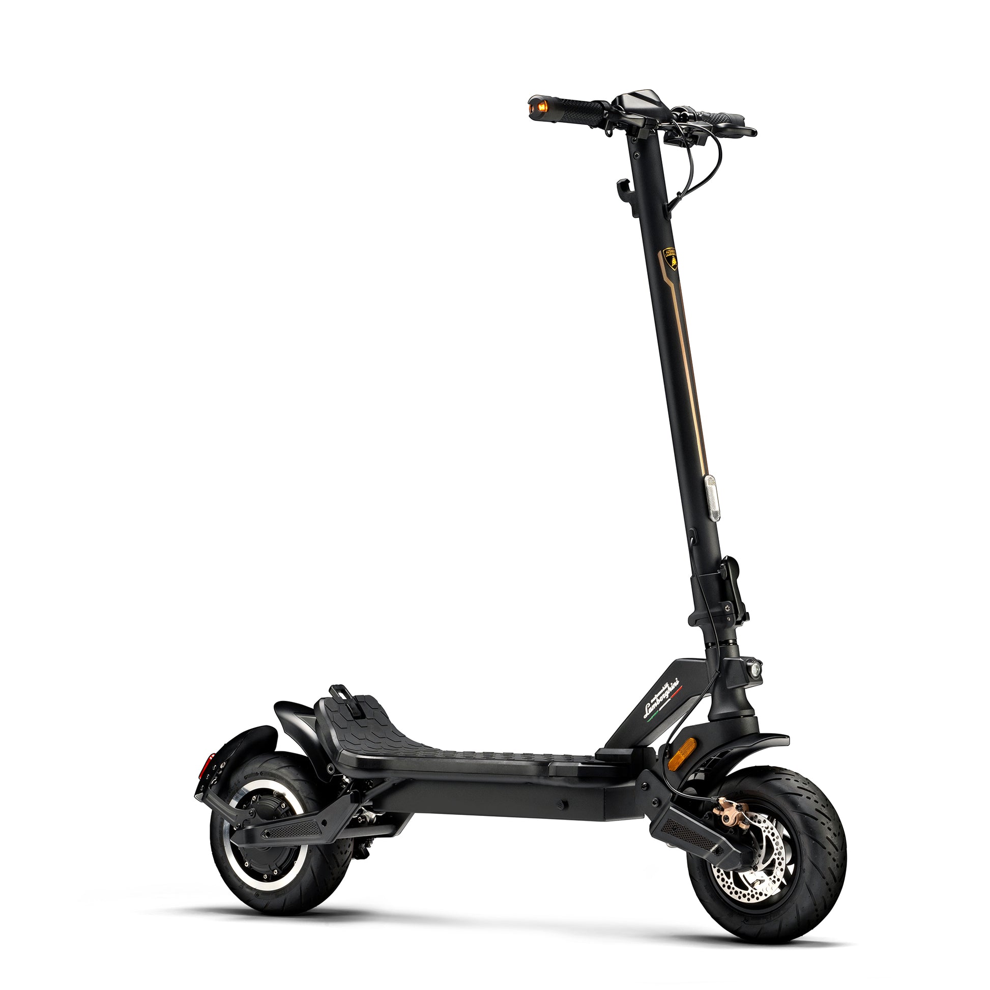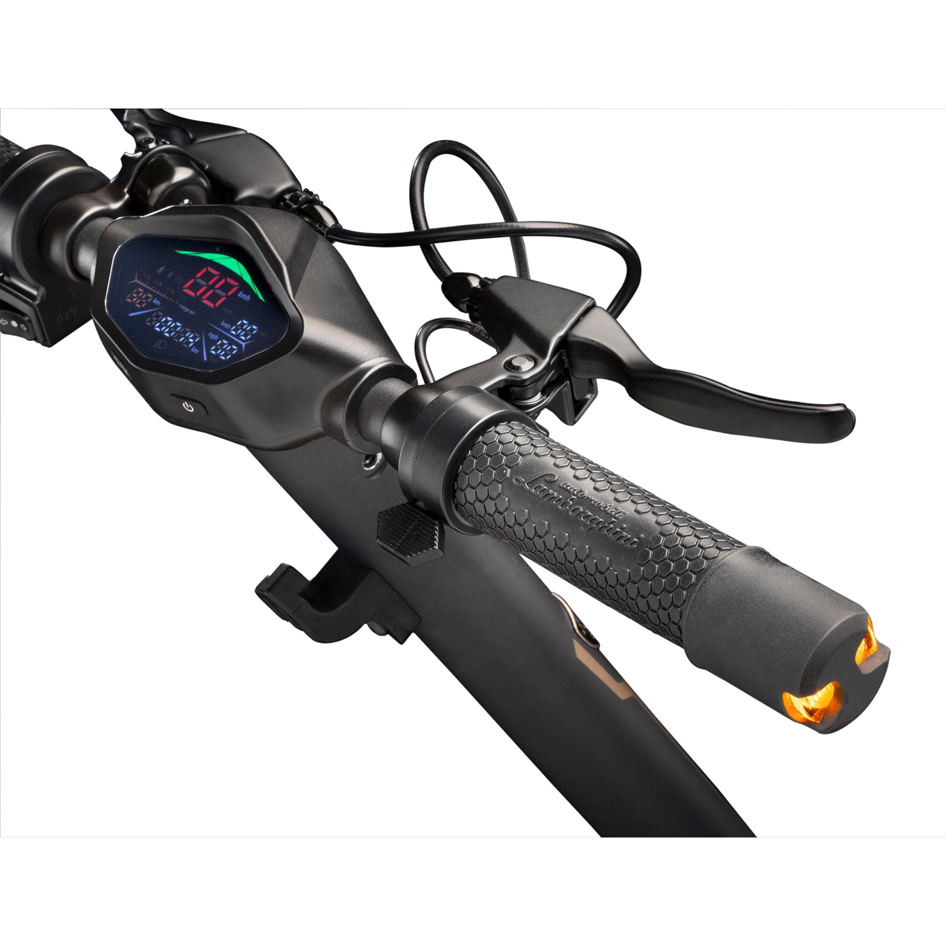 The e-scooter is equipped with a front disc brake, double electronic and disc rear brake and turn signals on the handlebar to improve safety.
