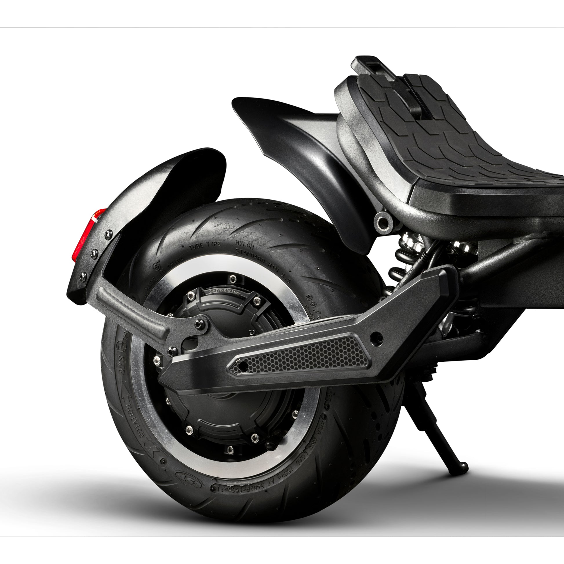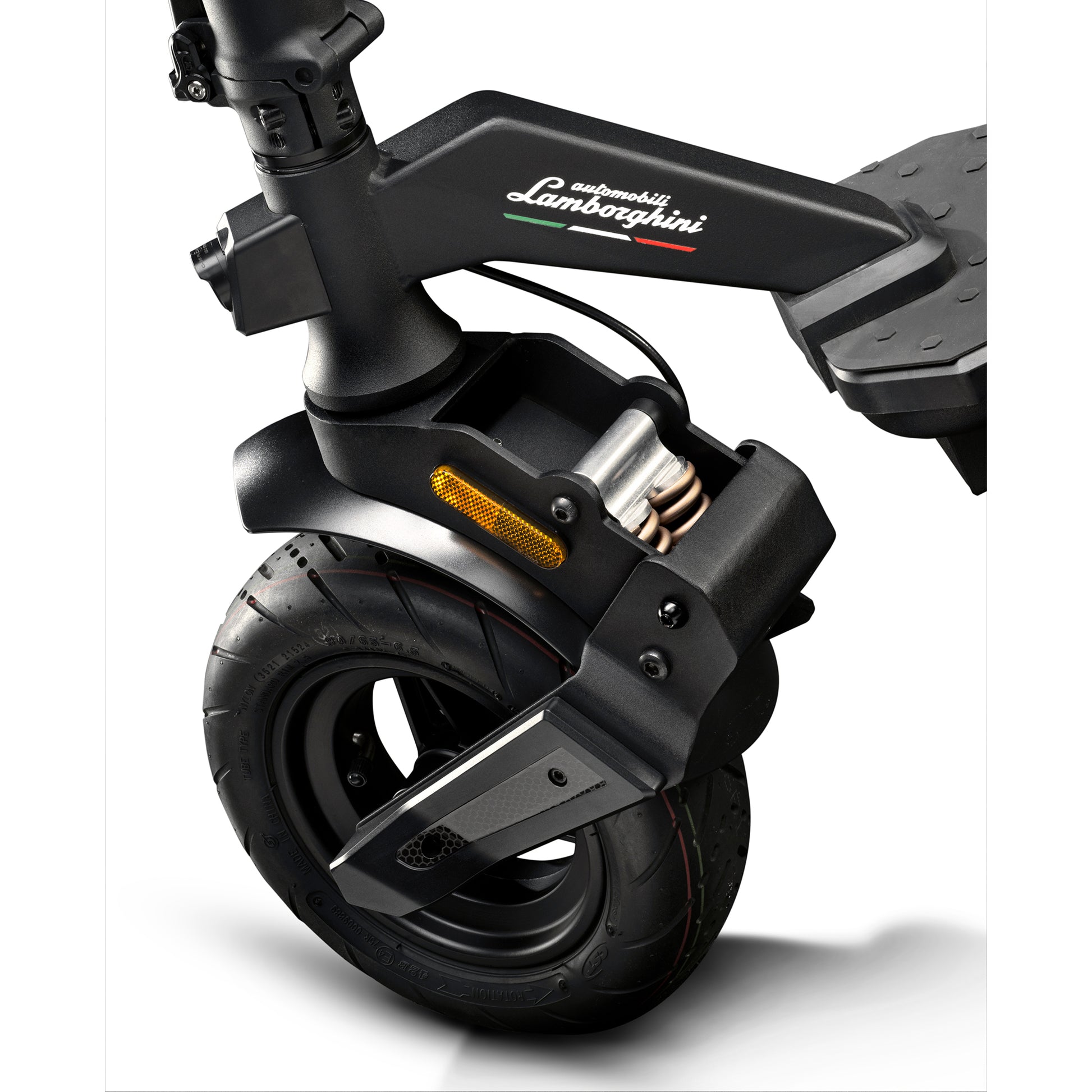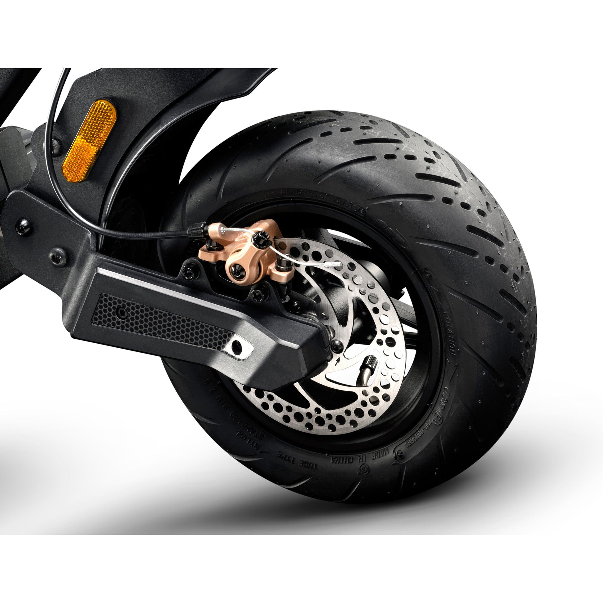 The tubeless wheels are puncture-free; combined with the front and rear suspensions, they absorb vibrations and dampen the unevenness of the road surface.