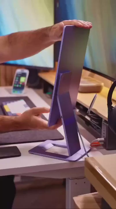 Choose from two stunning finishes: Lilac Luxe, a soft, refreshing shade, adding a gentle pop of color, or Metallic Gray, a sleek, modern tone that complements any workspace. With its pivoting hinge, the display easily switches between landscape and portrait orientations to suit your workflow. Plus, the 4-key OSD menu gives you full control to adjust display settings exactly as you like.