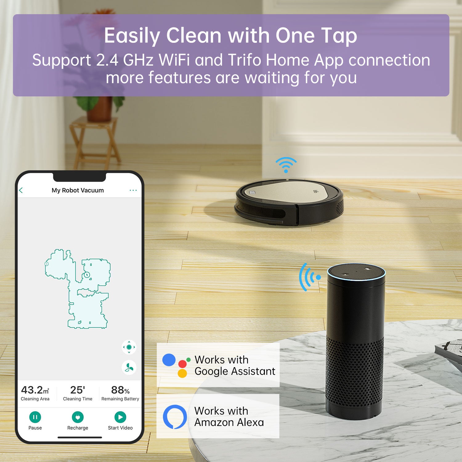 With Home App, home cleaning is just a breeze for you. You can easily create a cleaning schedule, control the suction power and cleaning direction by using the App. Only compatible with 2.4Ghz Wi-Fi.